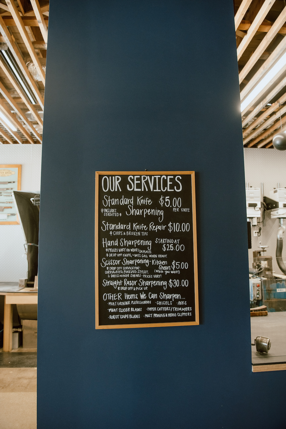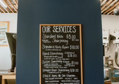Gallery View our latest photos from the store Get in Touch LET US TAKE YOUR KNIFE BLADES TO THE NEXT LEVEL We are taking mail orders again and look forward to sharpening your knives! LEARN MORE