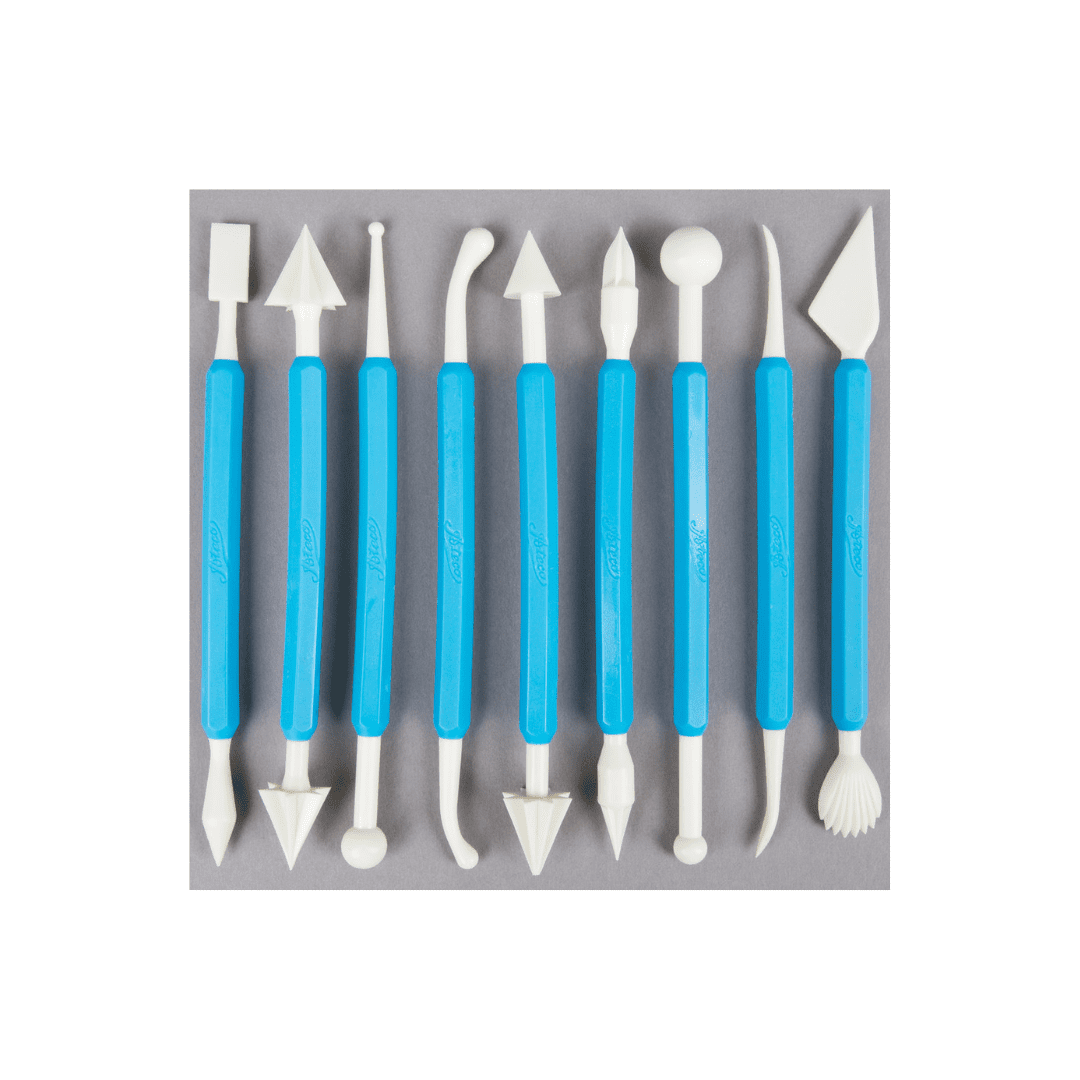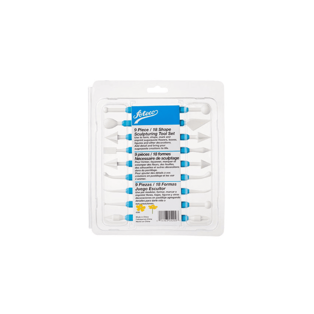 Create beautiful and tasty decorations with the help of this Ateco 4200 9-piece / 18 shape sculpturing set. Made of durable, food-grade plastic for excellent reliability, these tools are perfect for forming, marking, or imprinting your figures and decorations. Whether you’re making fondant ribbons, gum paste figures, leaves, or flowers, this set will help bring your artistic designs to life! Once the initial layer of fondant or gum paste has been formed and shaped, this set will help you take your designs a step further and add another dimension for a more finished look.