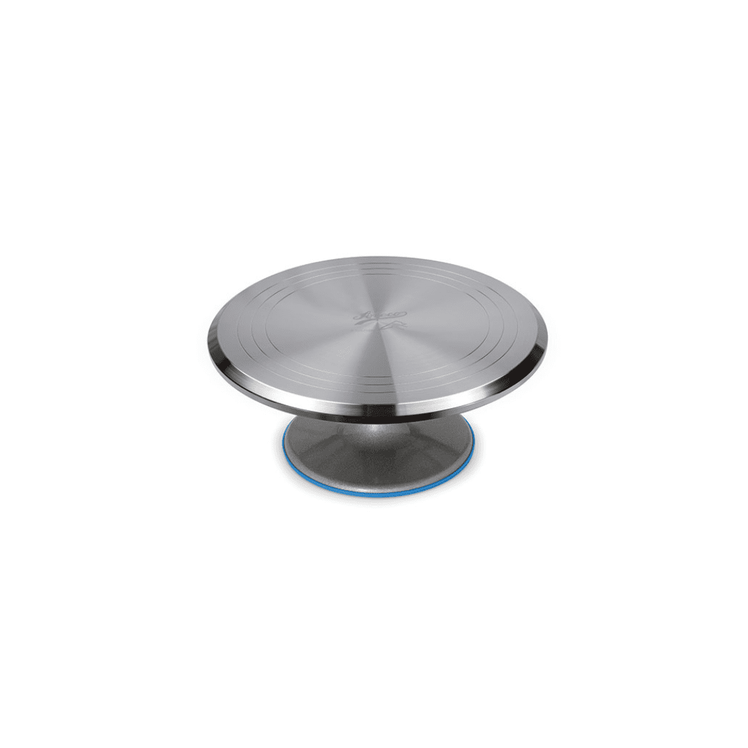 - A non-slip silicone base cap secures turntable to work surface when decorating