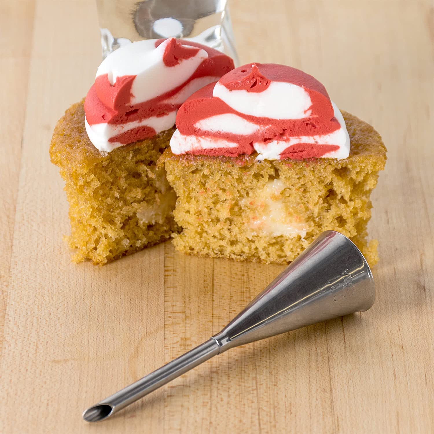 This Ateco 231 large Bismark pastry tube is perfect for filling pastries with frosting or cream. Made of stainless steel, this tube is durable enough to withstand repeated use. Its larger size makes it ideal for filling pastries and confectionary creations quickly and efficiently. The perfect way to fill jelly donuts, cream puffs, and eclairs, this pastry tube is specifically designed with a longer tube to inject pastries with sweet butter cream, chocolate, mousse, and more! The extended tube allows you to fill each dessert with minimal disturbance to the outside of your product to keep its shape intact. It is also compatible with the Ateco 402 coupler and Ateco 407 coupler using the 7/8″ coupler ring, making it easy to switch tips without changing the pastry bag. Using the right sized pastry tube for the job will enhance your presentation to draw patrons’ attention to your display cases and plated desserts.