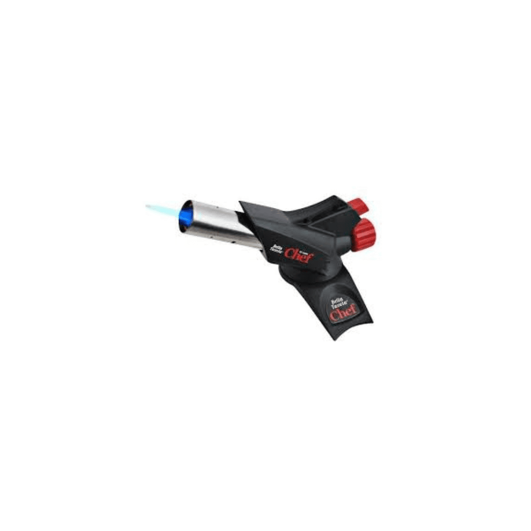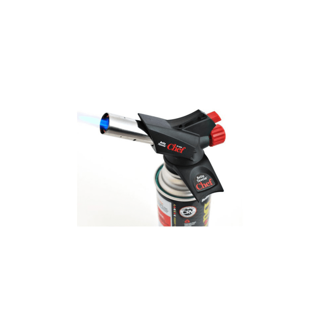 Lightweight, compact size, automatic ignition, adjustable flame control lever, preheating system allows torch to be used at any angle, safety locking mechanism, fits on notched collar butane fuel cartridges.