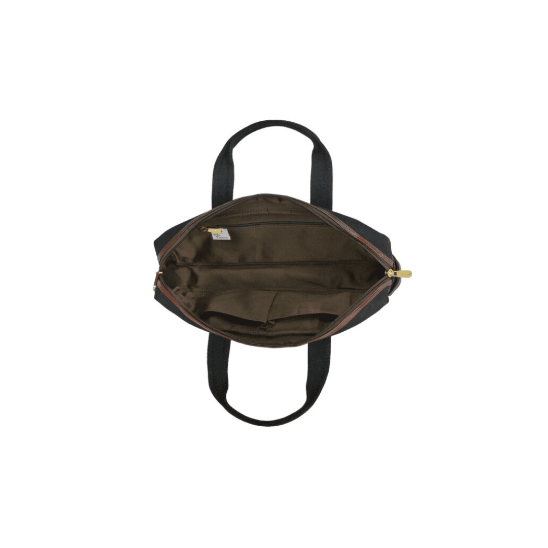 Made to withstand whatever the day throws your way, each bag is crafted with thick woven canvas, real leather details and brass feet on the bottom. Constructed from natural woven canvas and real leather, the bag has an overall size of 20” L x 4.5” W x 8” H (20 cm x 11.5 cm x 20.25 cm)
