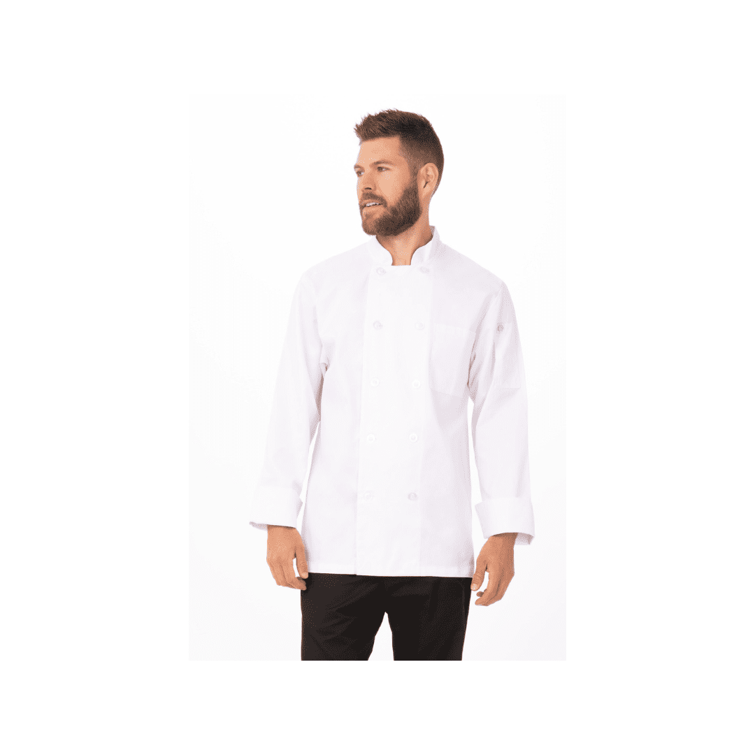 The Le Mans Chef Coat has a left chest patch and thermometer pockets. Available in white only.