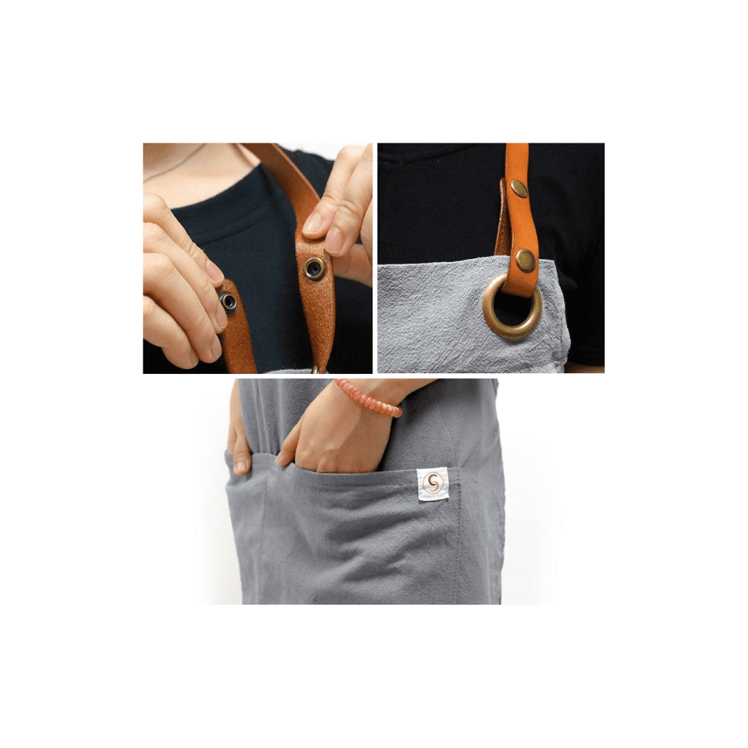 With a light 7.3 oz linen, we want to make sure you’re comfortable wearing this apron for an entire day. With the leather strap snap-off neck strap, we make sure you look classy no matter what!