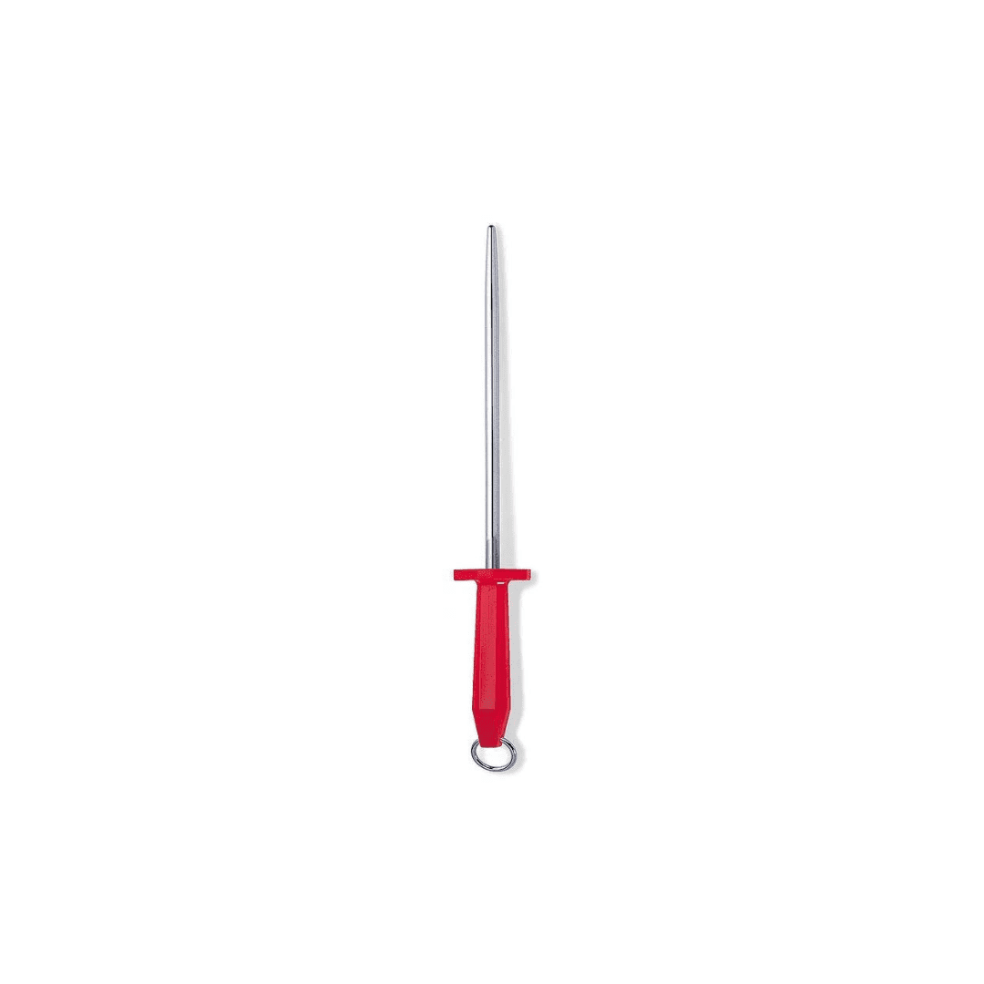 Packinghouse steel features a smooth, polished contact area. Used to straighten the edge of knife blades after numerous uses. A standard issue piece of equipment in any meat processing establishment. Steel features a durable, high-impact and highly visible handle with attached hang ring. Made in Germany and built to last.