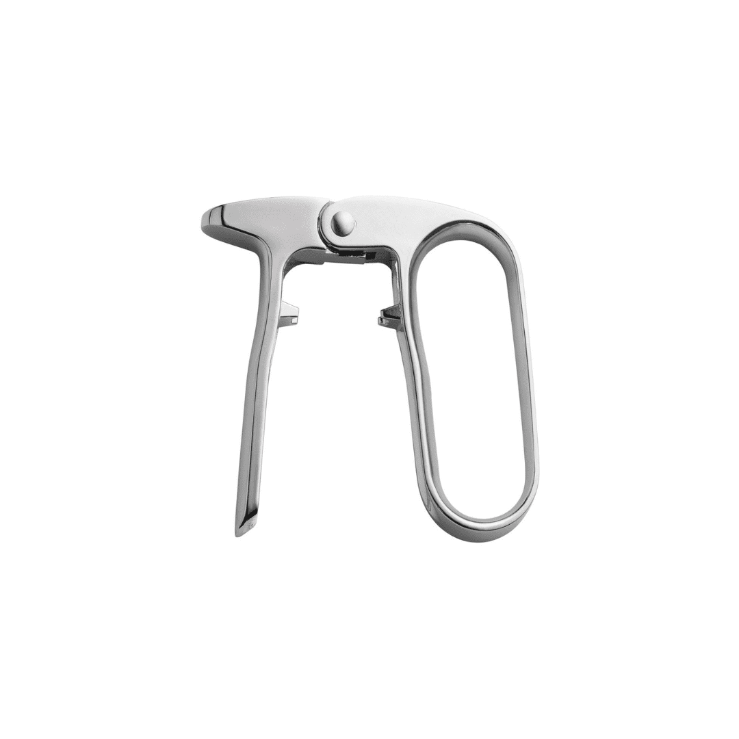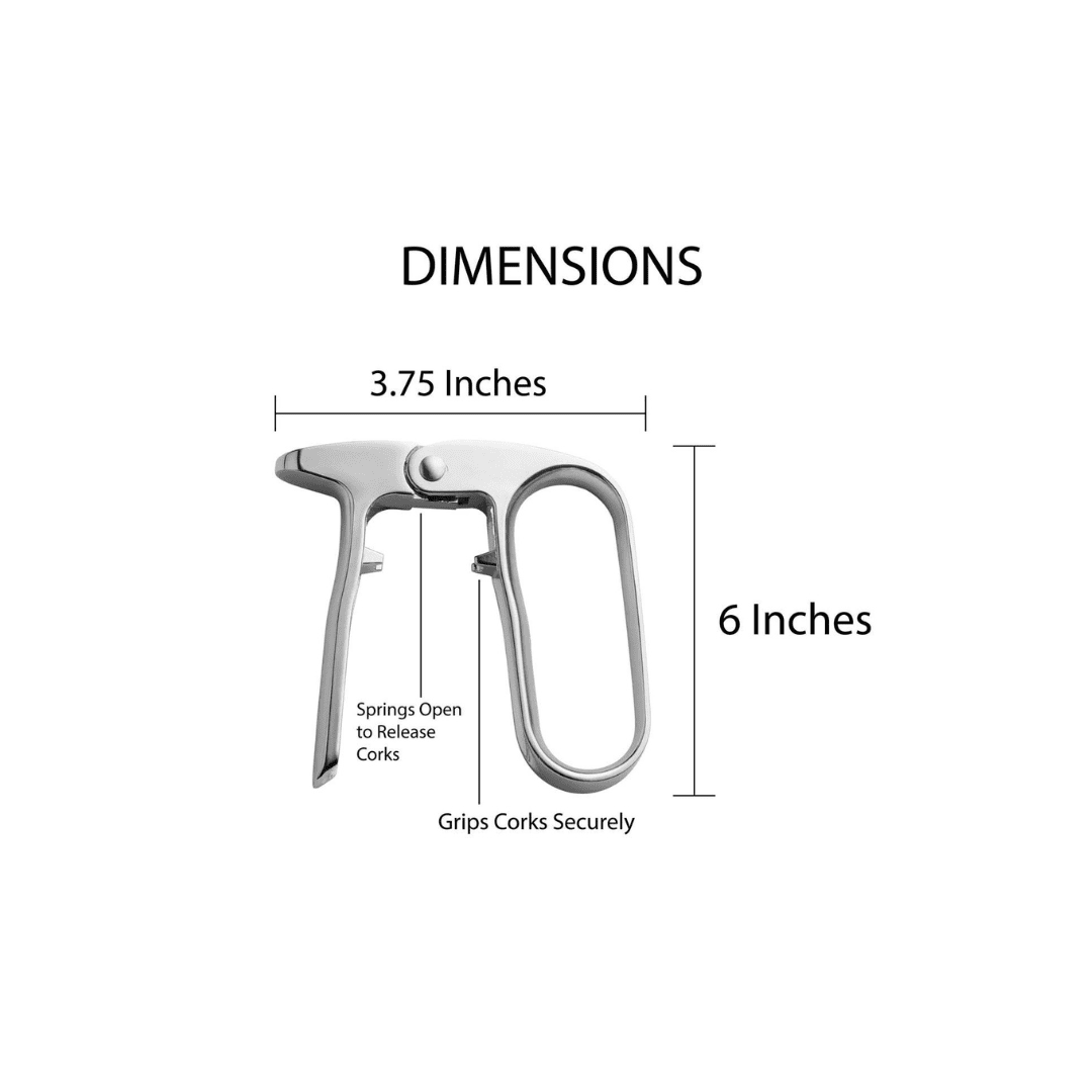 HIC Bar’s Champagne Opener pops corks quickly without any hand strain. HIC’s Champagne Opener grips corks securely for that added amount of leverage needed. Simply position the nubs inside the handles over the cork, squeeze handles together, and pull upward firmly. Allow the spring-action handles to open to release the removed cork. It’s compact for easy storage. Made from zinc alloy with a chrome-plated spring, it’s sturdy and durable. Hand wash.