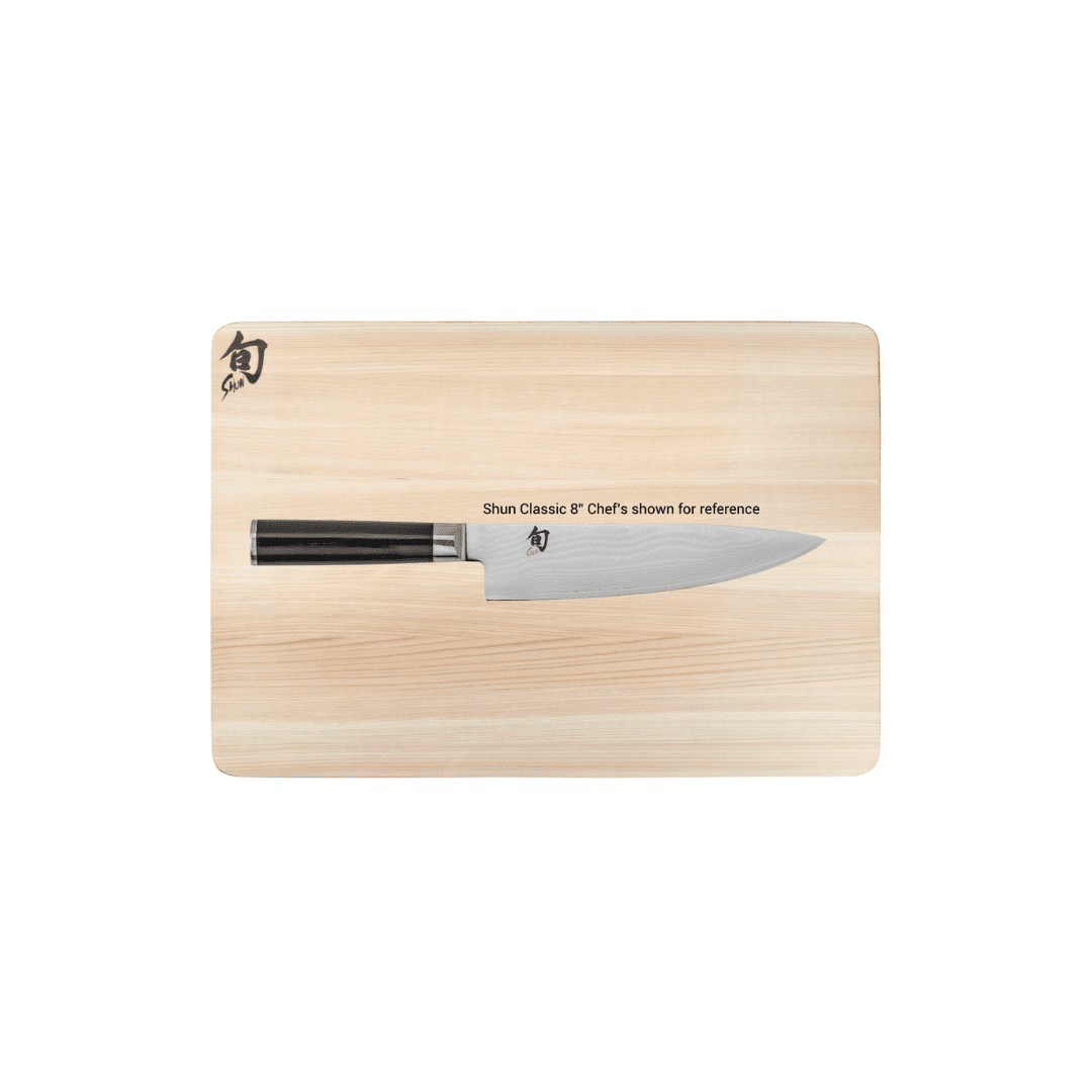 Hinoki is a type of Japanese cypress renowned for its beauty as well as its delicate, natural fragrance. Used in a cutting board, this medium-soft wood “gives” as you cut, helping to preserve the edges of your fine Shun cutlery.