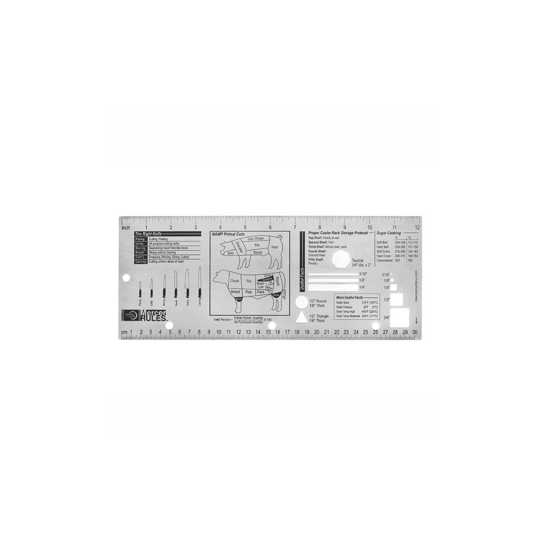 Durable stainless steel construction. Shows classic knife cuts. Handy reference tool full of resourceful information.