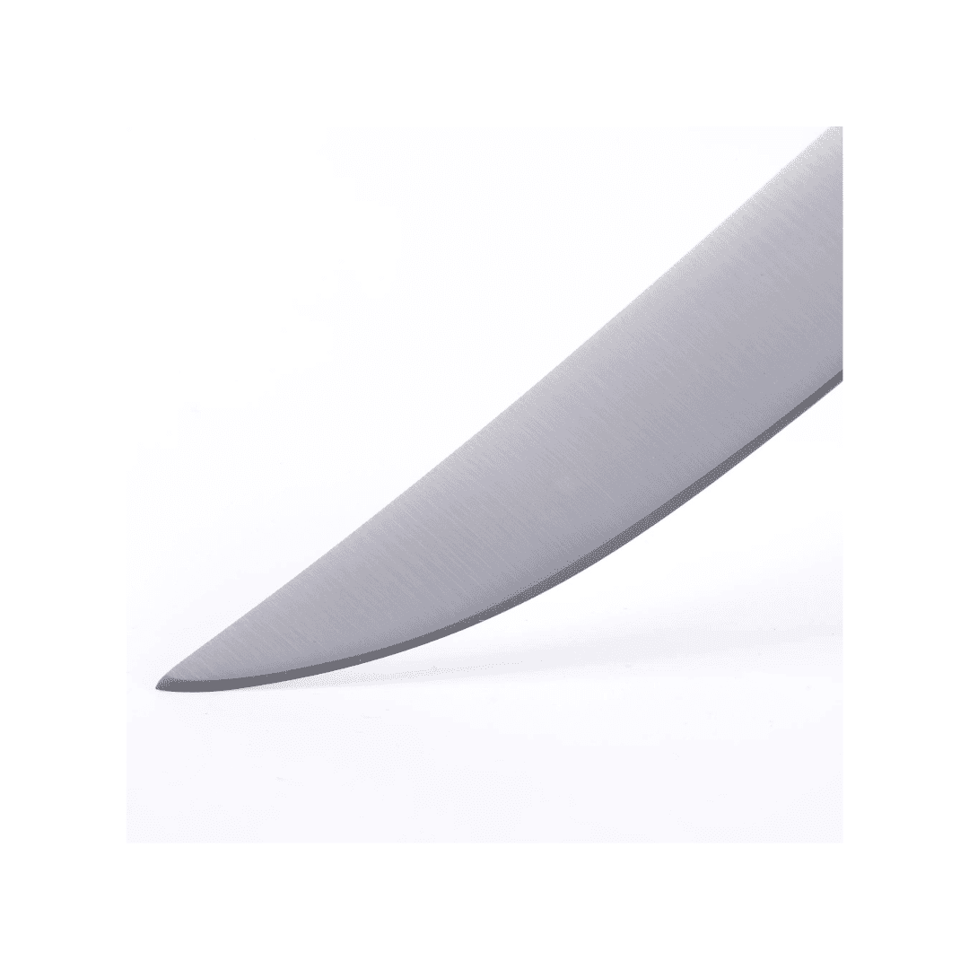 The Avanta Pakkawood 4 Piece Fine Edge Steak Knives are crafted from X50 German steel for knives that are sharp, rust resistant, and easy to maintain. Solid bolsters and full tang construction give the knives great balance and heft.