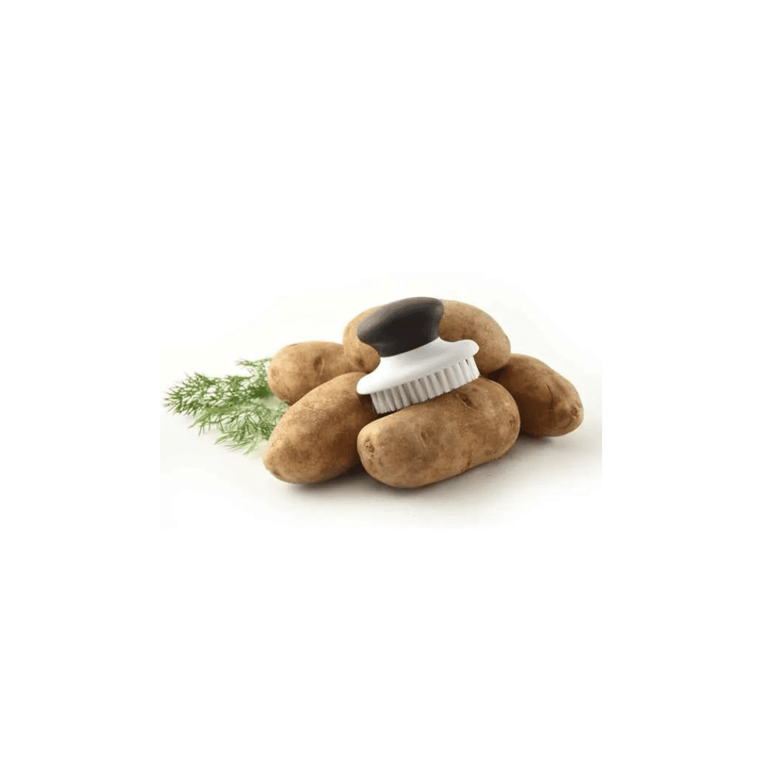 Sturdy nylon bristles. Ergonomic, santoprene handle provides a comfortable, non-slip grip even when wet.