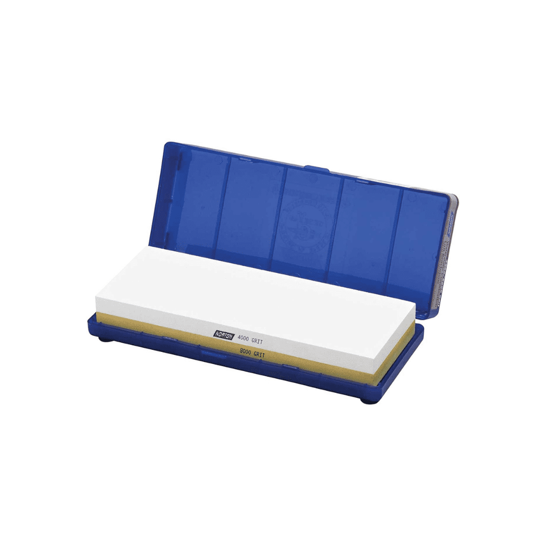 The 4000 grit side is fine, used for edge maintainence. The 8000 grit side is extra fine used for mirror finishes / polishing. In order for Waterstones to work properly, they must be soaked in water prior to use and the surface must be kept wet to develop the sharpening slurry. Because Waterstones are soft, they must be periodically flattened to maintain their effectivness