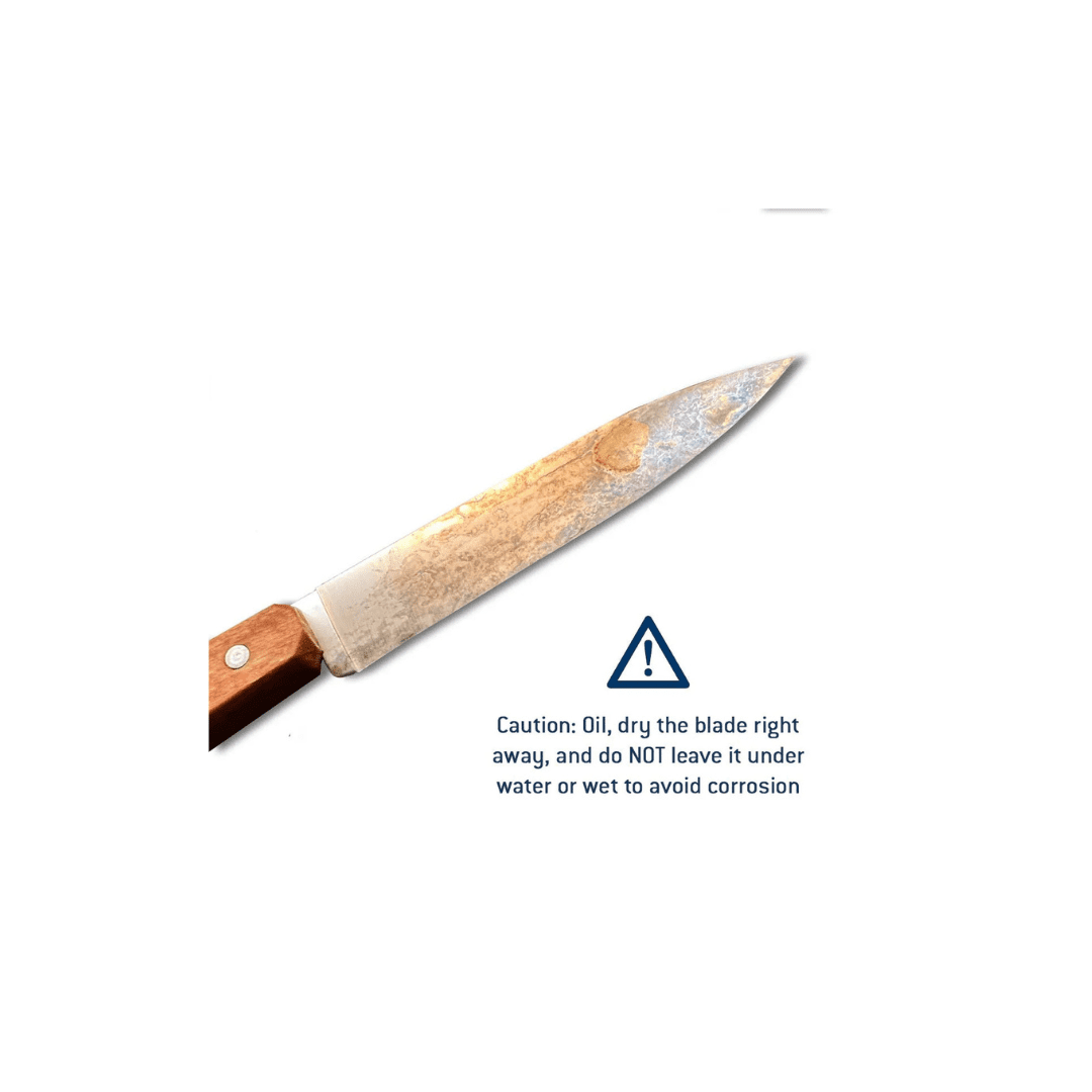 Perfect for everyday kitchen use, the carbon paring knives will stay extra sharp for years to come. Hand wash, and air dry to clean, it’s important to keep carbon steel well oiled so it avoids corrosion. Carbon steel holds an exceptional edge and is known for its long lasting cut quality.