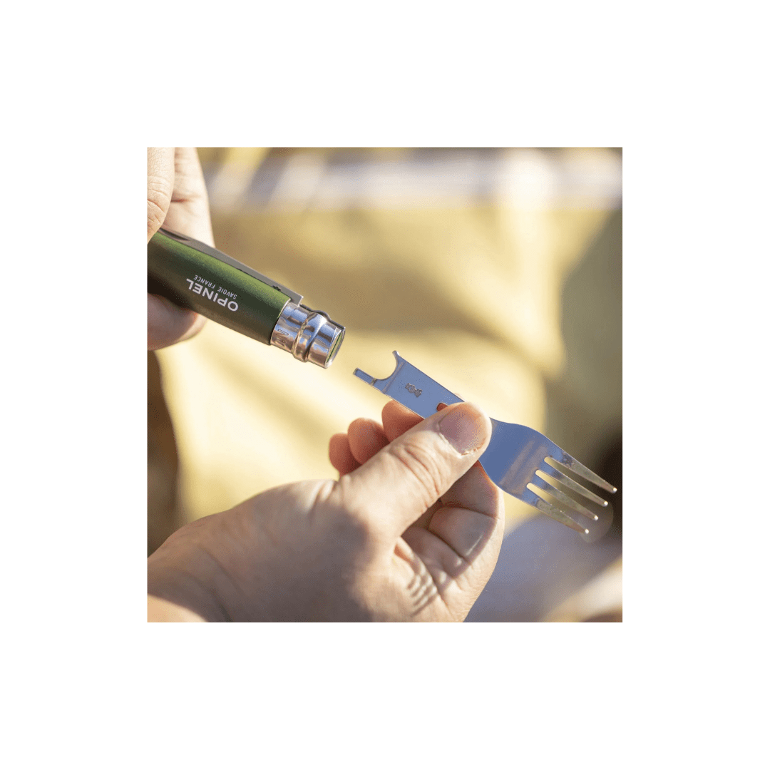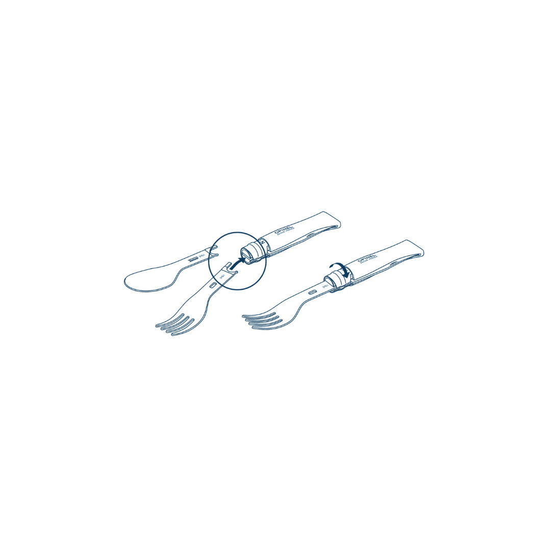 The Picnic+ cutlery inserts are smart and durable accessories for on the go meals and camp cooking. Part of our Nomad Cooking Collection, you can ditch the disposable cutlery and replace it with our Picnic+ set. Perfect for hiking, weekend picnics, or just everyday lunches, the Picnic+ set utilizes the Virobloc® safety ring on our No.08 folding knife to hold the fork and/or spoon insert in place.