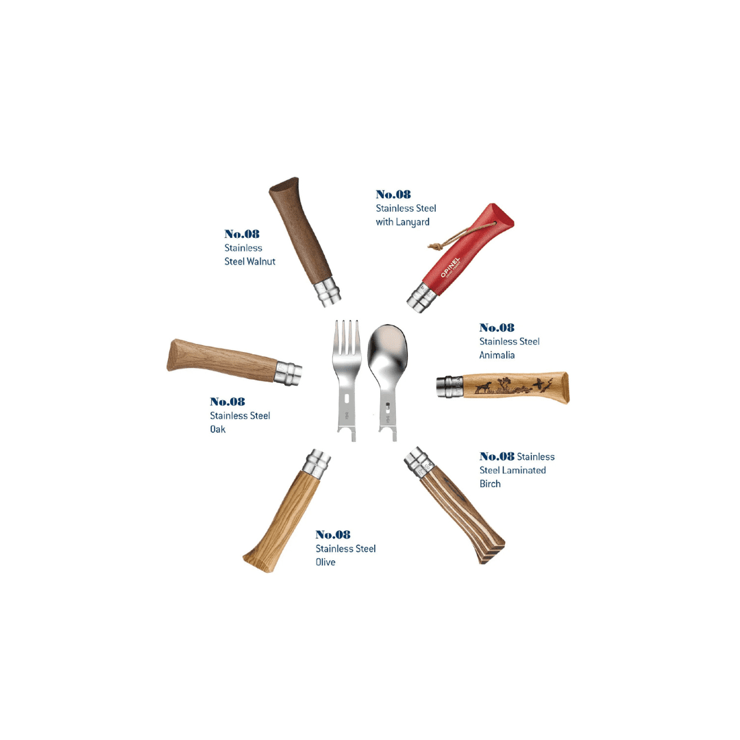 *Fork and spoon inserts compatible with all wooden handled No.08 folding knives equipped with the Virobloc® safety ring, circa 2000.