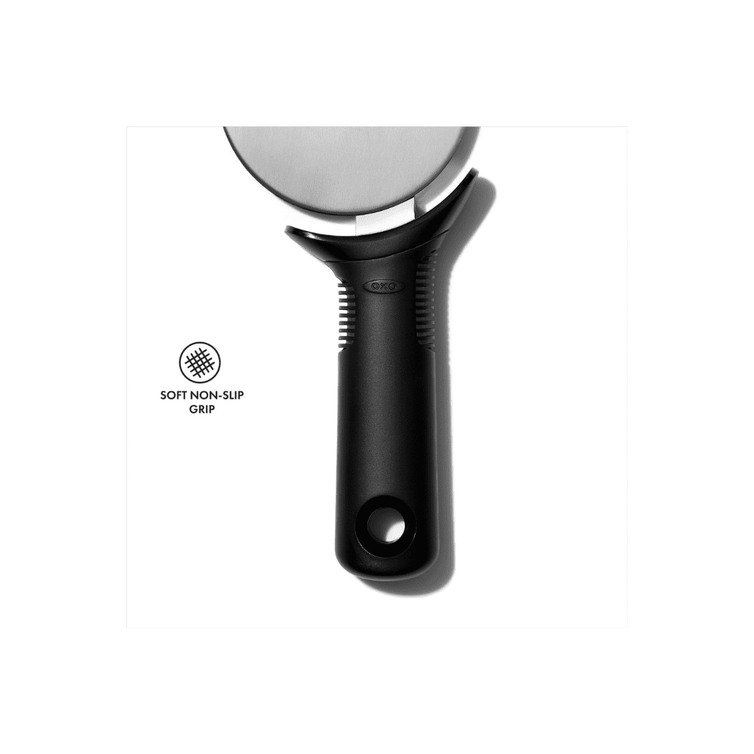 The OXO Good Grips Pizza Wheel has a durable, stainless steel blade that can easily slice through pizzas—and also efficiently cut brownies or shred lettuce for salad. The sharp blade glides through crusts and toppings with ease, and handle is designed with a thumb guard that keeps your fingers safe. The soft, non-slip grip ensures you maintain control when you’re on a roll. Dishwasher safe.