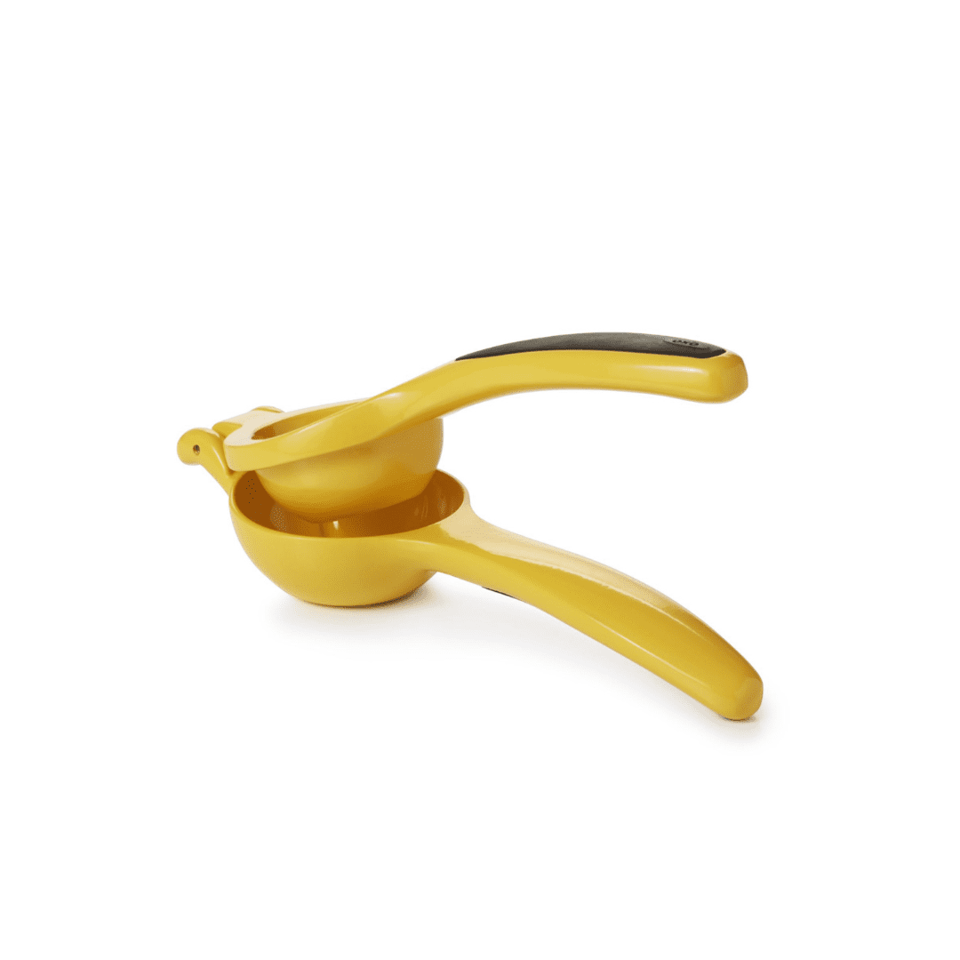 Fresh citrus juice is an easy squeeze away with the OXO GOOD GRIPS Citrus Squeezer. Constructed of die cast aluminum, this sturdy Squeezer fully extracts the juice from lemon and lime halves. The inside of the Squeezer looks like a traditional citrus juicer so you instantly know which way to insert the fruit. Soft, non-slip handles absorb pressure and provide a firm grip.