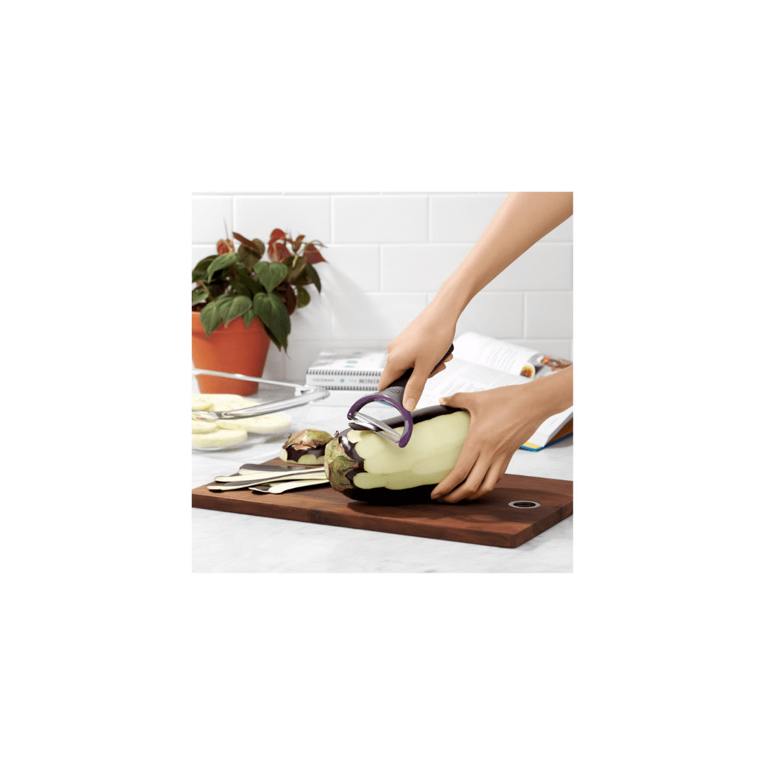 Peeling big vegetables doesn’t have to be a big task with the OXO Good Grips Large Vegetable Prep. We took our iconic peeler and adapted it for this specific task, with a new compact design and easy-to-maneuver shape. The sharp, Japanese stainless steel blades will never rust, and the non-slip handle will keep you going until the job is done. Dishwasher safe.
