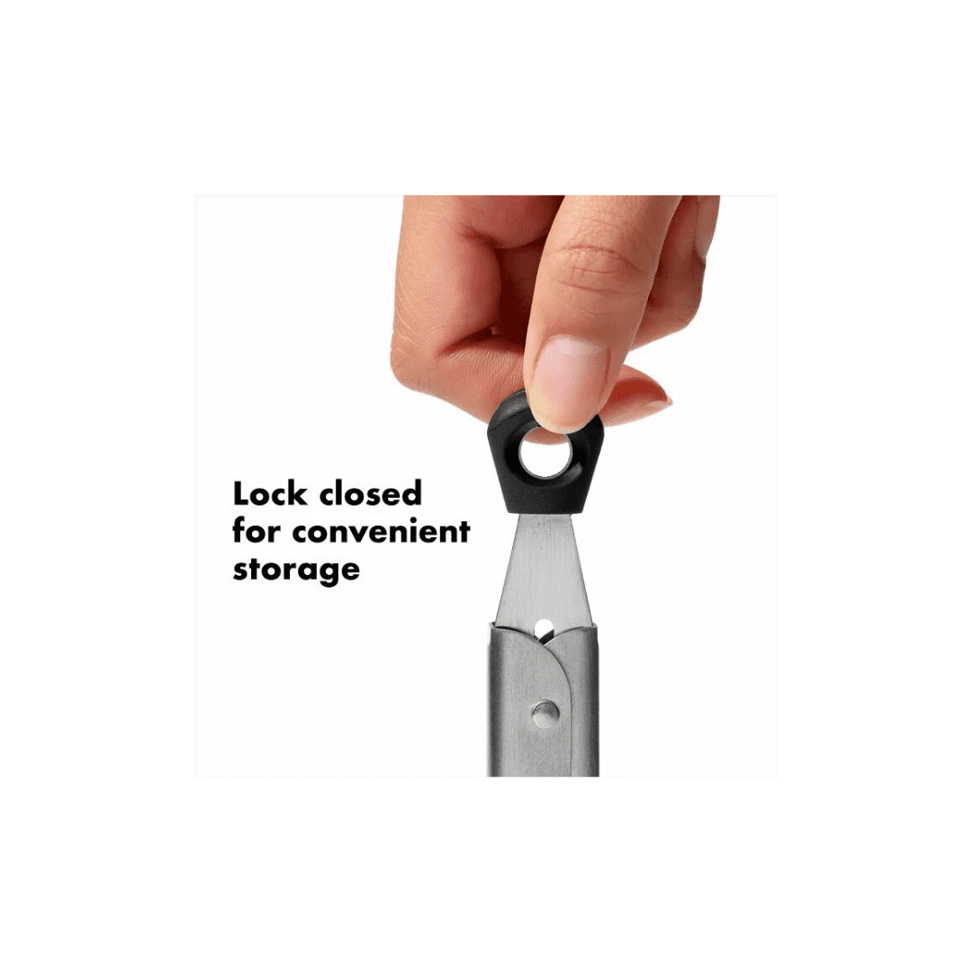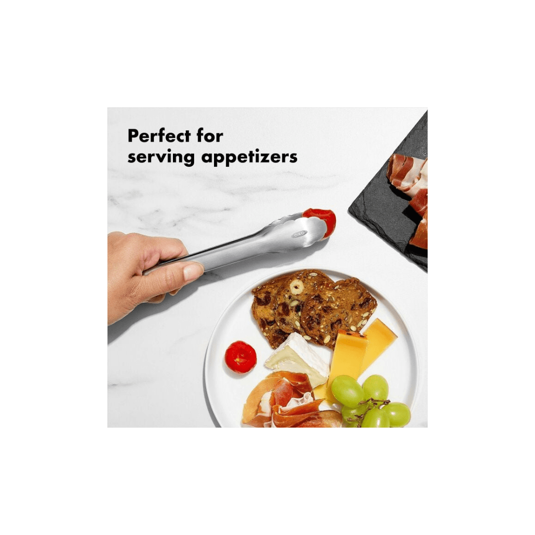 The compact size means they’re perfect for removing pickles and olives from jars while you prep, and the stainless steel construction means they look great for serving appetizers, cheeses, crackers, fruit and more. The scalloped edges hold food securely, so you can cook with them too. Tongs lock closed for easy storage. Dishwasher safe.