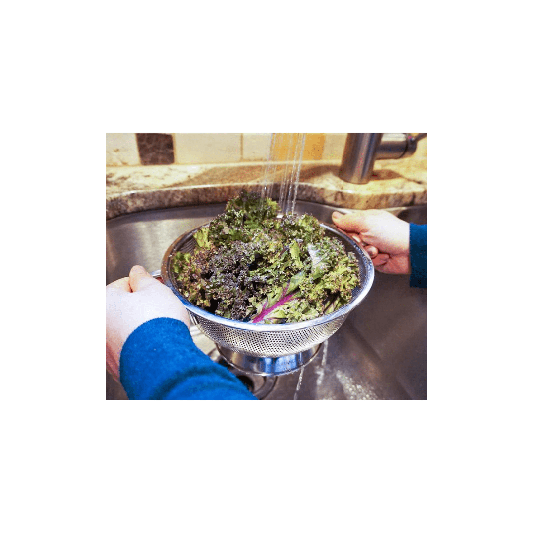 • Wide rim base holds the colander above the floor of the sink and provides stability when pouring hot water into the colander. Wide rim base also keeps the food inside the colander.