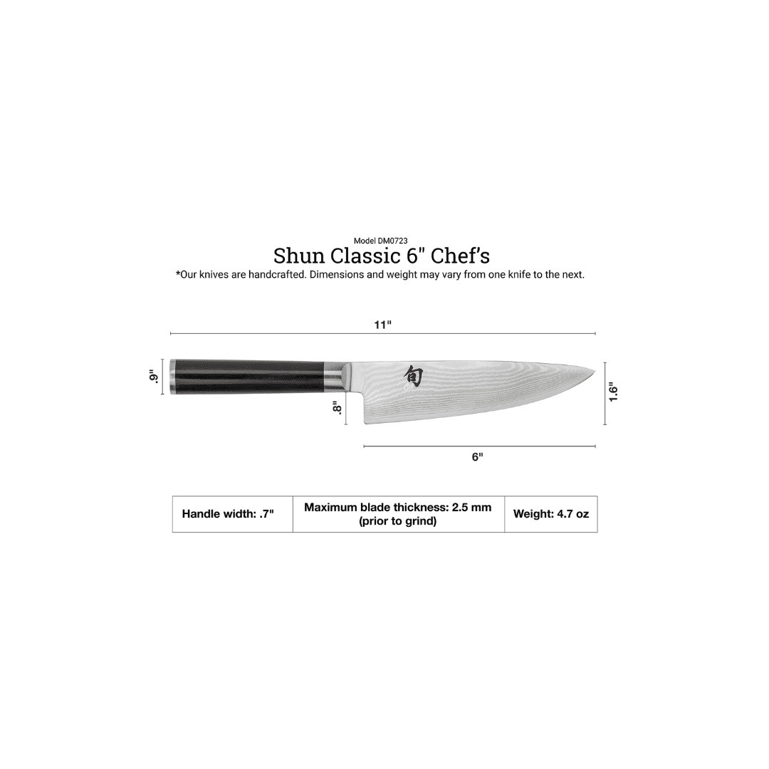 The Shun Classic Series feature a proprietary VG-MAX cutting core, a high-end stainless steel which is extremely hard resulting in an edge that is incredibly sharp and retains that sharpness longer. The Damascus cladding, with its 34 micro-layers of steel on each side to support the core, offers stain and corrosion resistance and helps food release from the blade. The blade is hand sharpened to a 16 degree angle on each side for top performance. The D-shaped ebony PakkaWood handle is beautiful and durable and does not harbor bacteria.