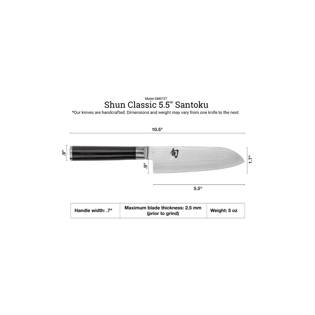 The Shun Classic Series feature a proprietary VG-MAX cutting core, a high-end stainless steel which is extremely hard resulting in an edge that is incredibly sharp and retains that sharpness longer. The Damascus cladding, with its 34 micro-layers of steel on each side to support the core, offers stain and corrosion resistance and helps food release from the blade. The blade is hand sharpened to a 16 degree angle on each side for top performance. The D-shaped ebony PakkaWood handle is beautiful and durable and does not harbor bacteria.