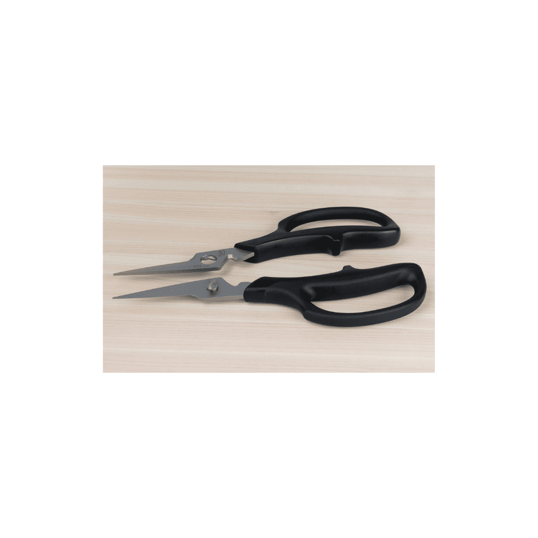 The high-carbon, molybdenum-vanadium, stainless-steel blades offer extra-long life. The ergonomically designed grip is padded with elastomer plastic for maximum comfort and the shears are suitable for both left- and right-handed use. For easy cleaning, the blades separate. An interlock screw lets you adjust the blade tension to suit your preferences.