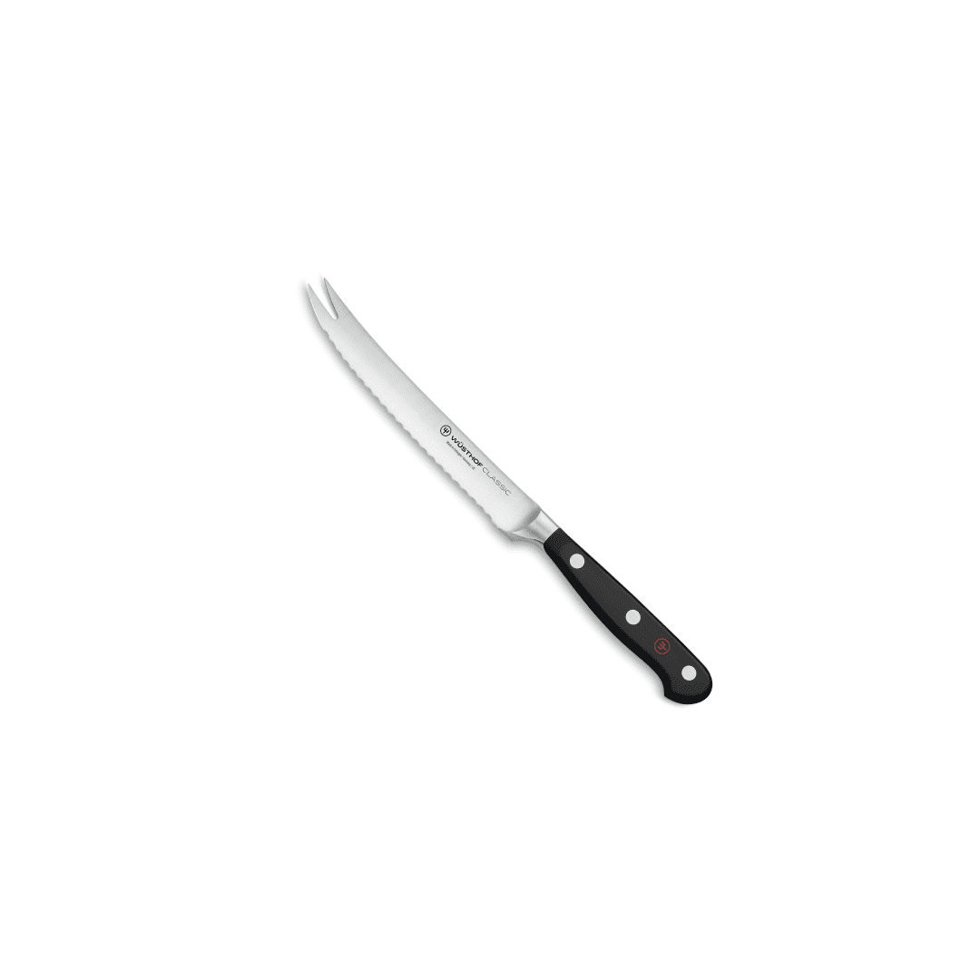 - Serrated blade that slices through bread and baguettes with minimal crumbs