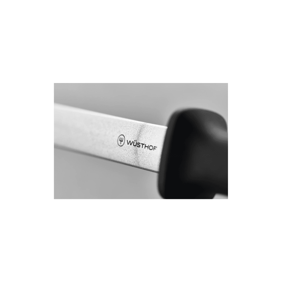 The special shape of the diamond grit on the sharpening rod ensures exceptional sharpening of the knife blade. The result: a smooth, sharp edge. This sharpening rod has a normal grit. As these rods remove a tiny amount of metal from the knife, we recommend an additional WÜSTHOF Honing Steel for daily or weekly maintenance.